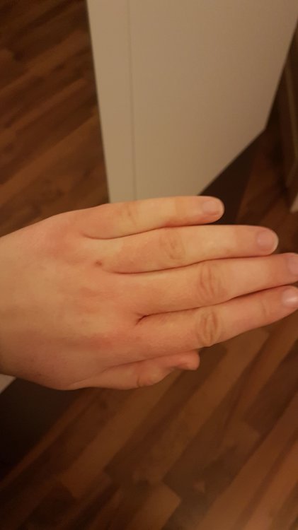 Hallo es fing alles damit an das ich meine Hände zu oft gewaschen habe und dann sah sie nach einer Zeit sehr angespannt aus. Dann bildeten sich zwischen einen Finger leichte weiße Schuppen und auf der Hand eine rote Stelle. Auf Desinfiktionsmittel reagierte ich mit brennen und die Haut war danach auch erstmal ziemlich gereizt und rot. Mit Bepanthen und kühlen ging das aber wieder weg allerdings blieb die kleine runde Rötung auf der Haut.Dann begann sich ein Teil der Handfläche auch zu schuppen und schließlich auch innen. Die andere Hand war auch von Anfang an gereizt aber nicht so stark wie die eine. Auf dieser findet man auch keine Rötung. Sie schuppte sich allerdings dann auch. Auf beiden Händen wanderten die schuppen dann auch noch hoch über die Finger.Mit Handcremes gegen extrem trockene Hände wie Eucerin wurde es vorübergehend besser. In den Hand zwischen räumen lössten sich am Ende auch die Schuppen ab. Das waren etwas größere weiße Schuppen. Die Haut war aber immer noch gespannt.Dann begann es erneut sich alles zu schuppen außer das Hand innere was aber auch schon wieder anfängt.Diesmal waren es keine weißen kleine schuppen mehr sondern schuppenherde wo die Haut dadrunter aber nicht rot ist nur rissig. Diagnostiziert wurde zuerst ein Handekzem. Allerdings bin ich mistrauisch da ich jetzt auch noch so wie es aussieht unter Fuß und Nagelpilz leide. An meinen Zeh ist die selbe rote Stelle wie an meiner Hand aber es ist wieder nur ein Fuß betroffen. Auf beiden Füßen habe ich aber wie es aussieht den Fußpilz. Für Schuppenflechte müsste ich unter den Schuppen ja auch noch eine Rötung haben aber diese bleibt aus sondern ich habe nur die Schuppenherde zwischen den Fingern. Wenn es ein Pilz wäre müsste dieser allerdings jucken und das tut es schon seit mehreren Wochen nicht. Ich bekomme vereinzelt rote Stellen auf der Hand die aber immer wieder verschwinden und ich reagiere sehr stark auf Wasser und normale Seifen. Ich habe seit den Falschen Schuhwerk seit letzes Jahr eine Entzündung an einem der Zehen auf beiden Füßen und habe gelesen sowas kann auch eine Schuppenflechte auslösen. Außerdem ist das unter von einen meiner Finger an einer Hand geschwollen. Meine Nägel bekommen Rillen die vorher nicht da waren und das Nagelbett meiner Zehen an den Füßen werden langsam gelb. Konnte das alles mit einer Schuppenflechte zusammenhängen oder ist es ehr unnüblich für diese Erkrankung?