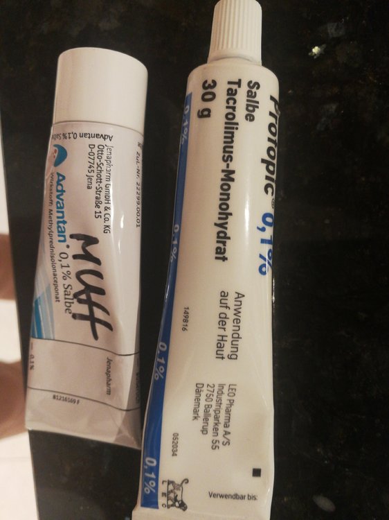 Dennoch bin ich etwas geschockt, dass dein Arzt gleich zu 2 solchen Hammer-Medis greift (Advantan ist und bleibt Cortison, wenn auch niedrig dosiert und das Tacrolismus-Präparat (Muh-Creme) ist ein Immunsuppressiva) und das scheinbar OHNE dich vorher per Abstrich auf Kulturanlage zu untersuchen.